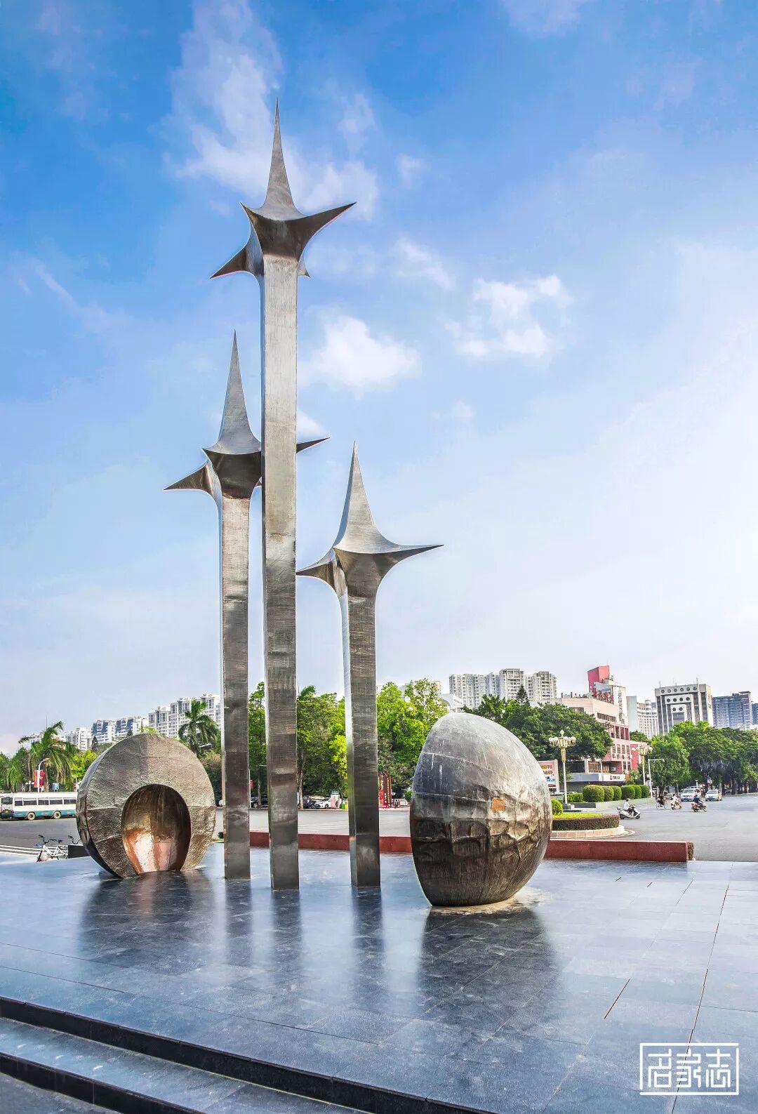 提示:点击上方"潮商"关注我们 本文经授权转载自“名家志”公众号 ![]() 解读汕头特区标志雕塑《升腾》 在龙湖区政府前广场中央,矗立着汕头的标志性雕塑之一的“升腾”——希望之星,在本地,很多人也把他称之为“升”。 《升腾》雕塑所处的龙湖区政府广场,至今仍然是汕头市文化活动的重要场所,每年在该广场举办的大型文体活动有十多次。 2008年5月10日,北京2008奥运会火炬接力(汕头站)活动,其起跑仪式便是在此雕塑群台基上隆重举行。 | 雕塑档案 坐落地点 – 大北山一路1号(龙湖区政府广场中央) 建成年份 – 1990年12月 占地面积 – 352㎡ 雕塑高度 – 8m、14m、11m银色方柱 雕塑用材 – 石、铜、不锈钢 雕塑坐向 – 坐北向南 ![]() 一 90年代应时代之作 雕塑建于1990年12月,由广州美术学院钟宝驹设计,三根顶部镶有星星标志的金属杆错落有致,高耸挺拔。 这里作为1981年汕头经济特区的发祥地,寄予了当时广大人民群众对汕头经济特区繁荣发展的美好祈盼与希望。 ![]() ![]() ![]() ![]() △ 从《升腾》观月 钟宝驹是广东高科技产业商会理事、中国发明协会会员、中国科学院科技开发咨询委员会成员、北京大学《水墨中国》学术主持。 秉持“君子不器”的座右铭,致力于将文学与理学、科技与艺术、实践与理论融会贯通。 △ 钟宝驹 其大学期间,在城市审美和城市景观等方面培养了较深的理论研究和设计施工经验, 1990年,主创并主持设计、制作、施工广东汕头经济特区的标志雕塑《升腾》。 1998年后,开始从事专利技术发明,是城市道路交通《可拆卸及可移动人车通道装置》系列专利发明人,被媒体称为“永远走在潮流前头”的人。 △ 雕塑《升腾》 ![]() 二 3(方柱)加2(半圆)组合 “升腾”雕塑位于汕头经济特区发祥地龙湖区的政府广场中央,是汕头的标志性雕塑。 占地面积352平方米,座北向南。正朝迎宾路、背靠龙湖区政府大楼,东侧为汕头海关大楼,西侧为龙湖宾馆。 △ 龙湖区政府广场 雕塑矗立于八级台阶的黑色花岗岩平台之上,由三根各高度为8米、11米、14米银色方柱,连结着三个参差有致、冉冉上升的不锈钢星星。 台基正面是高2米,长14米的红色花岗岩,镶嵌着时任广东省政协主席吴南生手书的“汕头经济特区”钛金铜浮字。 △ 雕塑正面、左侧特写 主体银柱左右为直径约3米的半圆球硕果状的铜球,构成整体雕塑,分别由石、铜、不锈钢三部分材料组成。 设计理念是借助人类所经历的石器时代、铜器时代、铁器时代的历史进程,发展至高科技时代,也喻意汕头经济特区事业发展日日上升。 其中,两个张开的半球,象征花蕾胚胎绽放,三根柱子是三棵芽,代表汕头经济特区蓬勃发展。 △ 底部半球 ![]() 三 25年前发行的邮票 1994年12月10日,国家邮政局为反映我国设置经济特区的建设成果,发行了1994-20《经济特区》纪念邮票一套5枚,将“升”与“开荒牛”“珠海渔女”“白鹭少女”和“鹿回头”五组雕塑分别为汕头、深圳、珠海、厦门,海南五个经济特区的标志印入邮票中。 △ 《经济特区》纪念邮票 邮票以各特区城市建设为背景,前景主图为各个特区的标志性城市雕像,全套邮票采用了横五连的布局,显示了特区经济的有机结合和互补性。 其中第三枚“汕头”,画面把雕塑“升腾”即“希望之星”置于中心位置,中景是如林的现代化城市建筑,远景衬以隐约可见的山峦。 △ 邮票《经济特区——汕头》 整个画面既点明了汕头的自然地理环境特征,又象征着汕头特区犹如破土而出,洋溢着一种蓬勃发展、升腾向上的时代气息。 该枚邮票为胶印,邮票规格40×30毫米,设计者为王振华和陈晓聪,发行量3,542.75万枚。 广东省集邮协会学术委员会委员、汕头市集邮协会学术委员会副主任陈楚金曾说, 作为一个土生土长的汕头人,他热爱自己的家乡,而作为一名集邮爱好者,他认为集邮文化为宣传汕头城市形象、弘扬特区精神提供了一个很好的载体。 在1994年12月10日邮电部发行的《经济特区》这套邮票中,值得一提的是象征汕头经济特区的雕塑“升腾”,于如林的现代化建筑与隐约可见的山峦下,《升》雕塑势如破竹,洋溢着一种朝气蓬勃、升腾向上的时代气息。 △ 龙湖景象(2019年) 广东省经济特区管理委员会主任、深圳市委第一书记、市长吴南生曾这样评价《升腾》: 特区从诞生到发展,用北宋改革名相王安石的诗句形容最入木三分——“看似寻常最奇崛,成如容易却艰辛”。 不忘历史,汲取智慧,继续敢为人先,打破体制障碍,为中国改革探路。这是我对升腾雕塑代表的汕头特区寄予的期待。 ![]() ![]() 《升腾》雕塑地址 _ 大北山一路1号(龙湖区政府广场中央) ![]() 总策编 | CREATOR 郑仲标 文稿 | WRITER 李嫚玉 摄影 | PHOTOGRAPHY 翁志雄 黄镜亮 吴钊全 图片 | PICTURE 部分网络 书法 | CALLIGRAPHY 吴著明 编辑 | EDITOR 马己芬 刊载于《汕头勘察设计》NO.6 本文对作者原文有删减及综合整理 ![]() 声明:本文不代表我们的观点,仅供读者参考。文章版权归原作者所有,如有侵权,请联系我们进行删除。 潮 商 文化的境界 · 财富的智慧