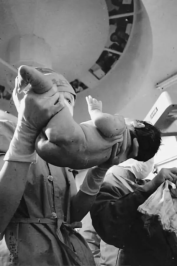 1963年1月,上海第六人民医院外科医师陈中伟将青年工人王存柏被机器完全轧断的右手成功地重新接合了起来。这是中国第一例成功的前臂完全性创伤断肢再植手术。图为陈中伟主治医生(右)等在观察王存柏的手腕恢复情况。
