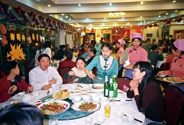2003年春节,广州很多人家都到酒楼饭店吃年夜饭,许多酒楼饭店在大年三十晚上都要分两到三轮接待市民。随着生活水平的提高,人们对物质的要求越来越高,越来越多的家庭选择在饭店吃年夜饭。