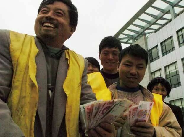 2006年1月31日,国务院发出《关于解决农民工问题的若干意见》,提出保障农民工合法权益的政策体系和执法监督机制、惠及农民工的城乡公共服务体制和制度。图为1月24日,在贵阳市打工的农民工领取2005年的工资。
