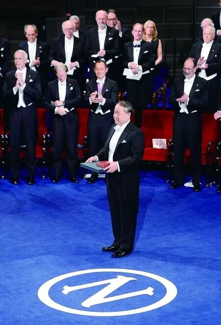 2012年12月10日,在瑞典首都斯德哥尔摩音乐厅举行的2012年诺贝尔奖颁奖仪式上,中国作家莫言领取诺贝尔文学奖。3年后,屠呦呦获诺贝尔生理学或医学奖,成为首位获得诺贝尔科学奖项的中国本土科学家。(新华社/武巍)