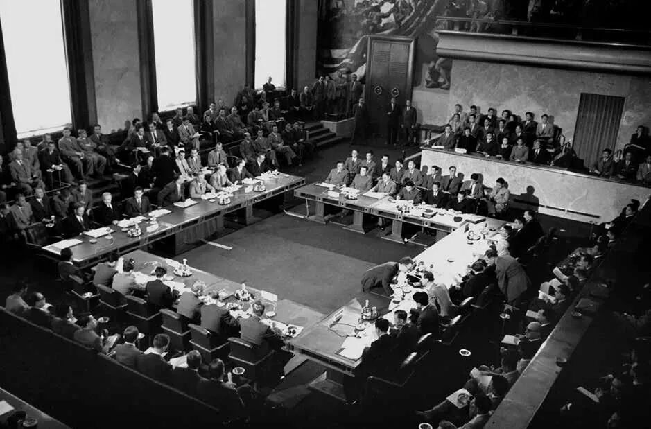 1954年4月26日至7月21日,中华人民共和国首次以五大国之一的身份参加日内瓦会议,这是新中国首次登上国际舞台。图为1954年日内瓦会议的最后一次全体会议。