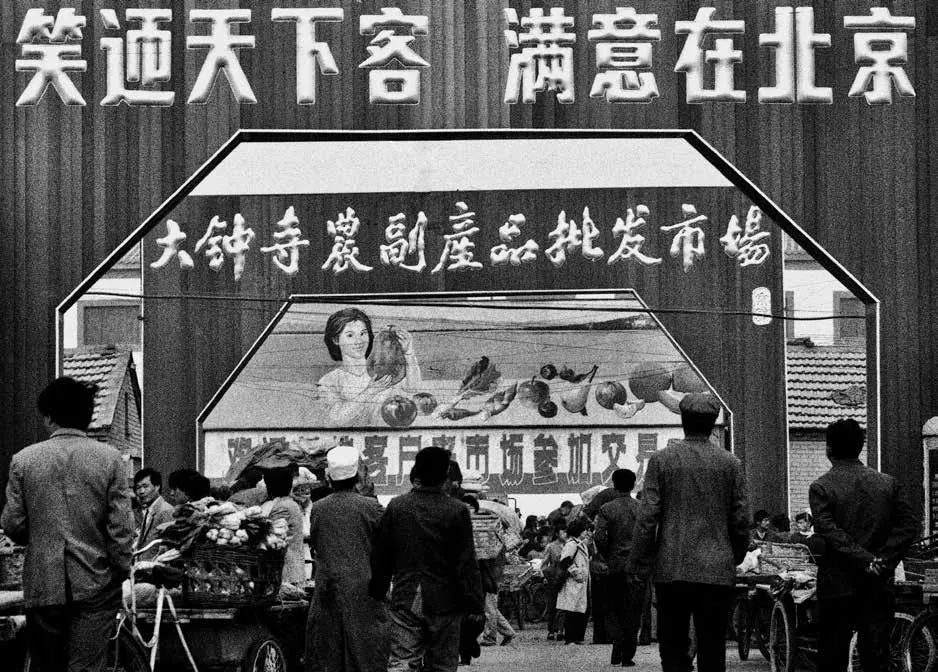 改革开放初期,农副产品批发市场应运而生。图为1987年5月的北京大钟寺农贸市场。
