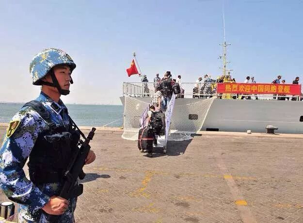 2011年2月22日至3月5日,因利比亚国内形势发生重大变化,中国政府分批组织中国在利比亚的35860人次安全有序撤离。这是新中国成立以来,中国政府最大规模的有组织撤离海外中国公民的行动。图为中国军队协助利比亚撤侨行动。