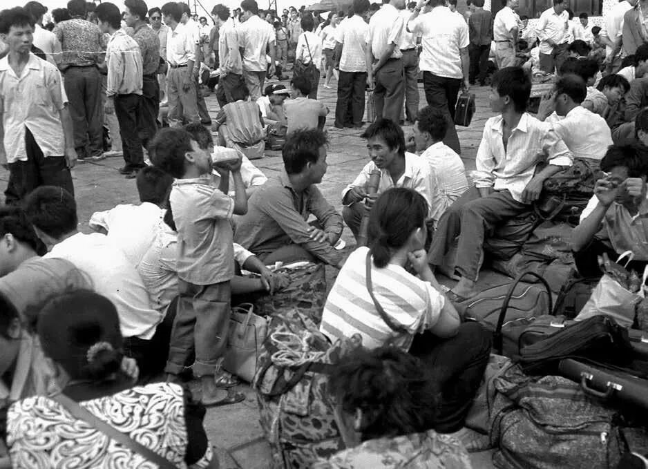 “东西南北中,发财到广东”,这是90年代响彻全国的口号。务工者如潮水般涌入广东,广州火车站成为直面潮水的第一道闸门,务工潮的来临使得广州火车站客流量大幅增加。图为1995年,广州火车站的打工妹。(新华社/陈学思)