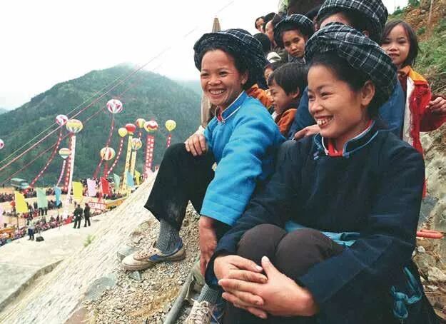 1997年3月18日,南昆铁路全线铺通。南昆铁路被称为“国家最大的扶贫项目”,是沟通西南与华南沿海的一条重要通道。图为布依族群众等候在位于贵州境内的八渡车站接轨点,想亲眼目睹铁路铺通的盛况。
