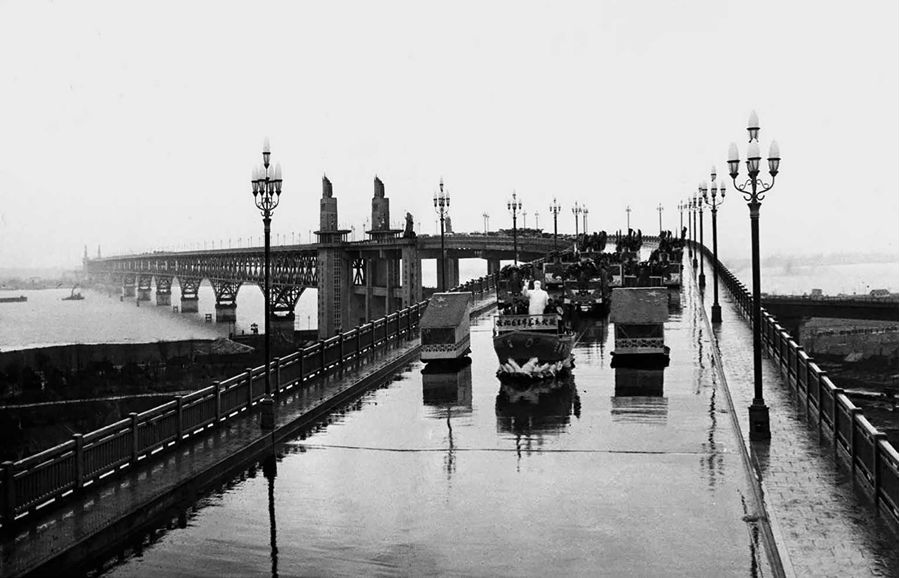 1968年12月29日,南京长江大桥全面建成通车,它是长江上第一座由我国自行设计和建造的双层式铁路、公路两用桥梁,在中国桥梁史和世界桥梁史上具有重要意义,是中国经济建设的重要成就、中国桥梁建设的重要里程碑。图为南京长江大桥公路桥举行通车典礼。