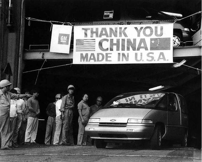 中国与世贸组织的主要缔约方进行了长达3年的双边磋商,就中国复关的一些核心问题达成谅解。与此同时,中国与世界各经济体之间的交流与合作日益密切。图为1993年8月7日,1985辆雪佛兰汽车从美国运抵天津港,美方人员打出一幅写有“感谢你,中国”的横幅。