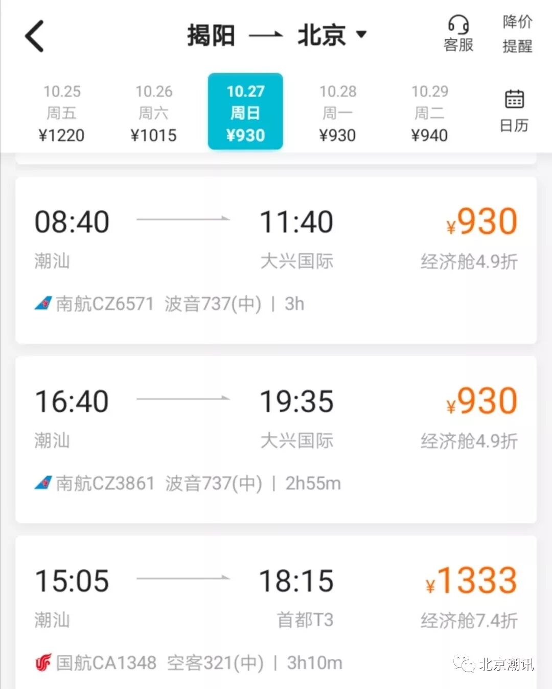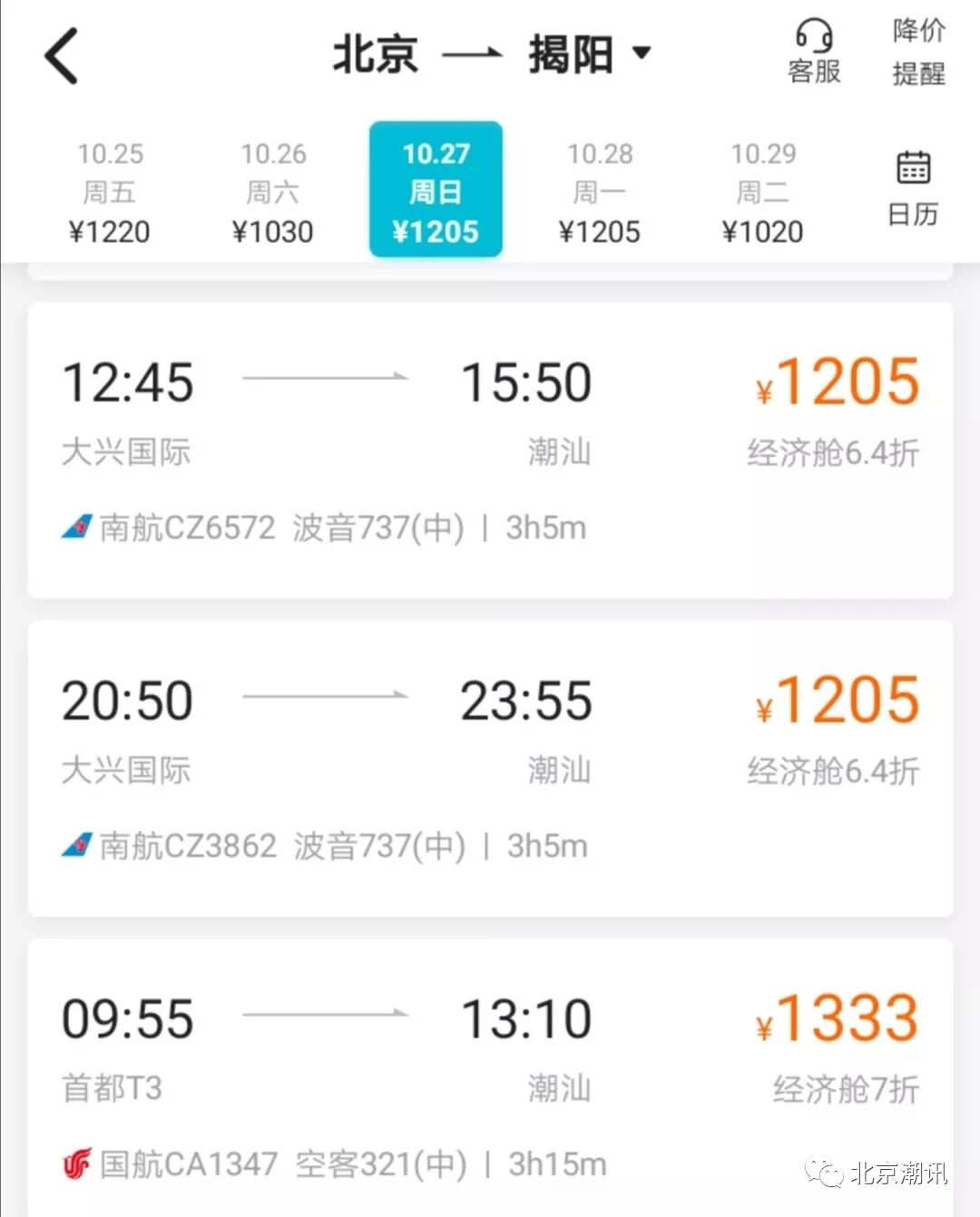 10月27日起,南航于北京和潮汕之间的航班将转场至北京大兴国际机场。世界新七大奇迹之一的北京新机场就将呈现在您眼前。