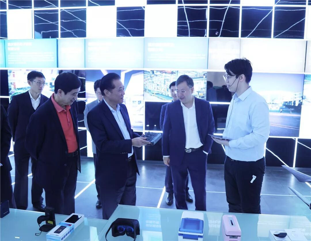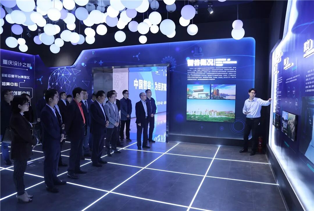 重庆南岸区委副书记、重庆经开区管委会主任王茂春(中),重庆经开区管委会副主任张进(右一)与深圳市潮汕商会会长、深圳市侨商智库研究院理事长郑汉明(右二),荣誉会长王再兴(左二),深圳市潮汕商会常务副会长郑大欣(左一)合影 会前,王茂春主任、张进副主任等领导陪同郑汉明会长一行考察调研了位于南岸区新天泽国际总部城的中国智谷(重庆)科技园展示馆。该展示馆通过“智聚、智联、智创、智造、智享”五大板块全面展示中国智谷(重庆)科技园的产业发展情况。 据了解,中国智谷(重庆)科技园于2018年2月挂牌成立,总面积约83.96平方公里,其中智谷先导区规划面积2.48平方公里,围绕“大数据、大健康、大生态”重点发展大数据智能产业,聚力建设“三区一城”,即智能运营平台集聚区、智能终端产业集聚区、智能制造创新集聚区、智慧生活新城。中国智谷(重庆)科技园将重点发展大数据、人工智能、物联网、智能硬件等9个产业,目前已落户大数据智能化规模以上企业150多户。