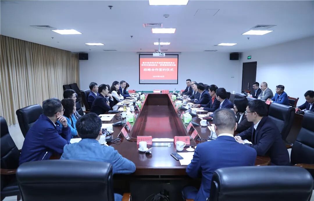 提示:点击上方"潮商"关注我们 2019年10月14日上午,深圳市潮汕商会、深圳市侨商智库研究院、重庆经济技术开发区管理委员会战略合作签约仪式在重庆南岸区行政中心举行。 重庆南岸区委书记、重庆经开区党工委书记郑向东,重庆南岸区委副书记、重庆经开区党工委副书记、管委会主任王茂春,重庆经开区党工委委员、管委会副主任张进,重庆经开区管委会副巡视员闵秀兰以及经开区投促局、经开区招商服务中心、迎龙商务区管委会主要负责人出席会议。重庆经开区管委会副巡视员闵秀兰主持会议。 深圳市潮汕商会会长、深圳市侨商智库研究院理事长郑汉明,荣誉会长王再兴,重庆市政府参事室特约研究员、重庆海关原关长马忠源,深圳市潮汕商会常务副会长郑大欣、林旭楠,秘书长李楚芬,会长助理蔡泽炜,深圳市侨商智库研究院理事、重庆筹备组负责人欧家路等应邀出席会议。
