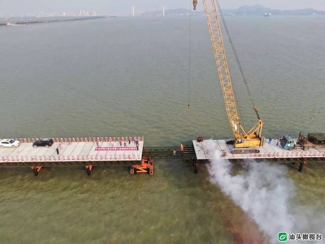 提示:点击上方"潮商"关注我们 日前,全长1501.5米、宽度为8米的牛田洋快速通道项目控制性工程牛田洋特大桥北岸施工钢栈桥顺利合龙贯通,加上6月3日已完成的长456米的南岸栈桥,牛田洋特大桥合计长约2公里的主栈桥全部完工。