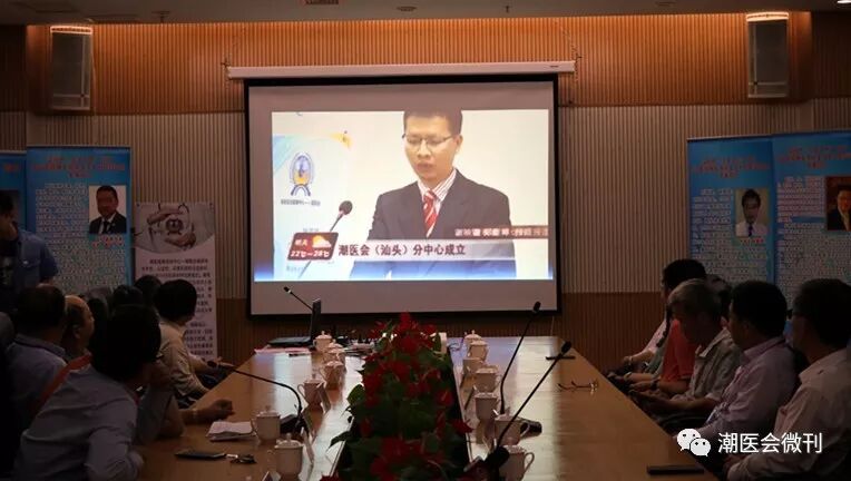 在仪式上众嘉宾观看潮医会宣传片
