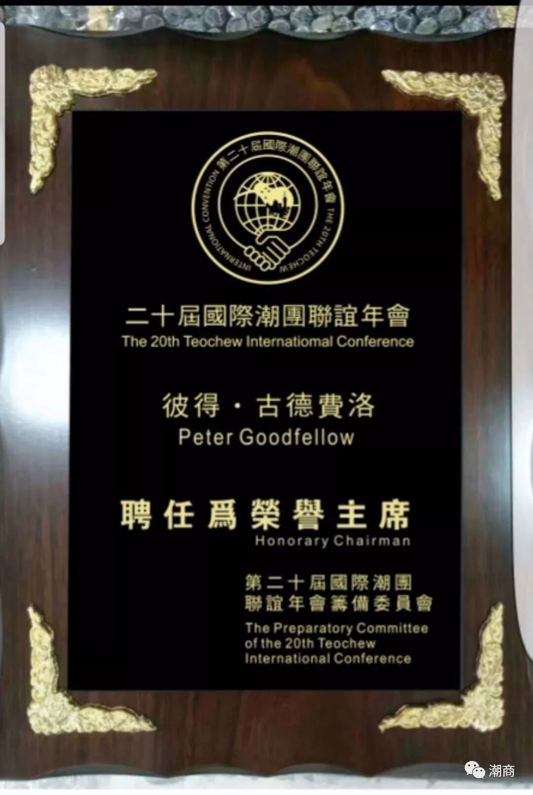提示:点击上方"潮商"关注我们 5月14日,新西兰国家党党主席彼得·古德费洛正式接受国际潮团总会张乙坤主席聘请,成为第二十届国际潮团联谊年会荣誉主席。