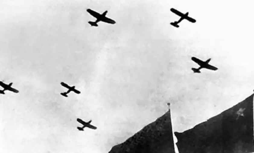 70年前的10月1日 仅有的飞机凑不够空中梯队 周恩来提议让飞机循环飞行 两次接受检阅