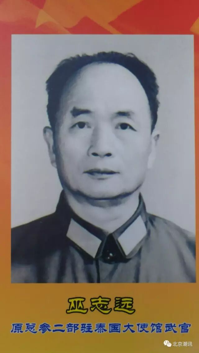 巫志远同志,1922年生于广东普宁,1939年参加中国共产党,是广东人民抗日游击队韩江纵队北撤的48位军事骨干之一,曾参加抗美援朝战争,长年在中央军委机关工作,离休前是中国驻泰国大使馆武官。