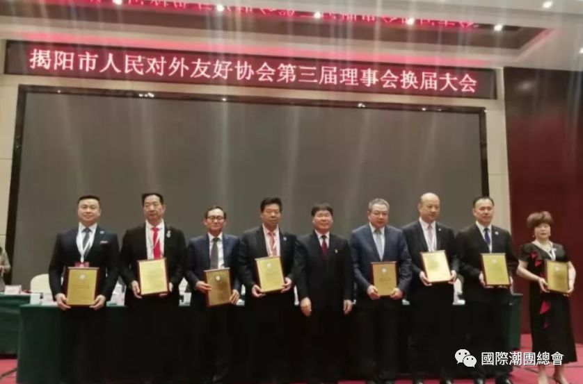 2019年11月18日,揭阳市人民对外友好协会第三届理事会换届大会在揭阳迎宾馆召开,产生新一届理事会,聘请一批海内外知名人士为荣誉会长、名誉会长和特邀理事。