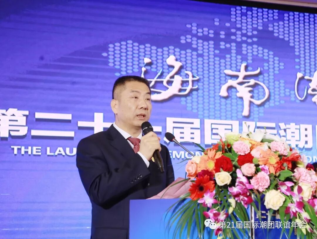 洪江游主席在致辞中代表国际潮团总会、海南潮促会向出席新闻发布会的领导、嘉宾、媒体记者致以诚挚的谢意,对长期以来指导和支持潮促会工作、申办第二十一届国际潮团联谊年会的政府相关领导表示衷心的感谢。洪江游主席分别围绕海南潮人和世界潮人的发展概况、办会思路和特点、筹委会构架四个方面发表讲话。他表示,海南潮人的发展历史已有八百多年,最早可追溯到宋朝时期。广大海南潮人以海南为家,把个人事业同祖国发展、经济特区、自贸区(港)建设紧密联系在一起,已发展成为推动海南经济社会发展的一支不可忽视的力量。2021年第二十一届国际潮团联谊年会将由海南潮促会主办,联合海南兄弟社团共同举办,彰显海南潮人团结、合作的精神,把本届年会办成一届有商贸合作、有潮汕文化特点、有海南特色的盛会,助力海南国际旅游岛、自贸区(港)试验区建设。