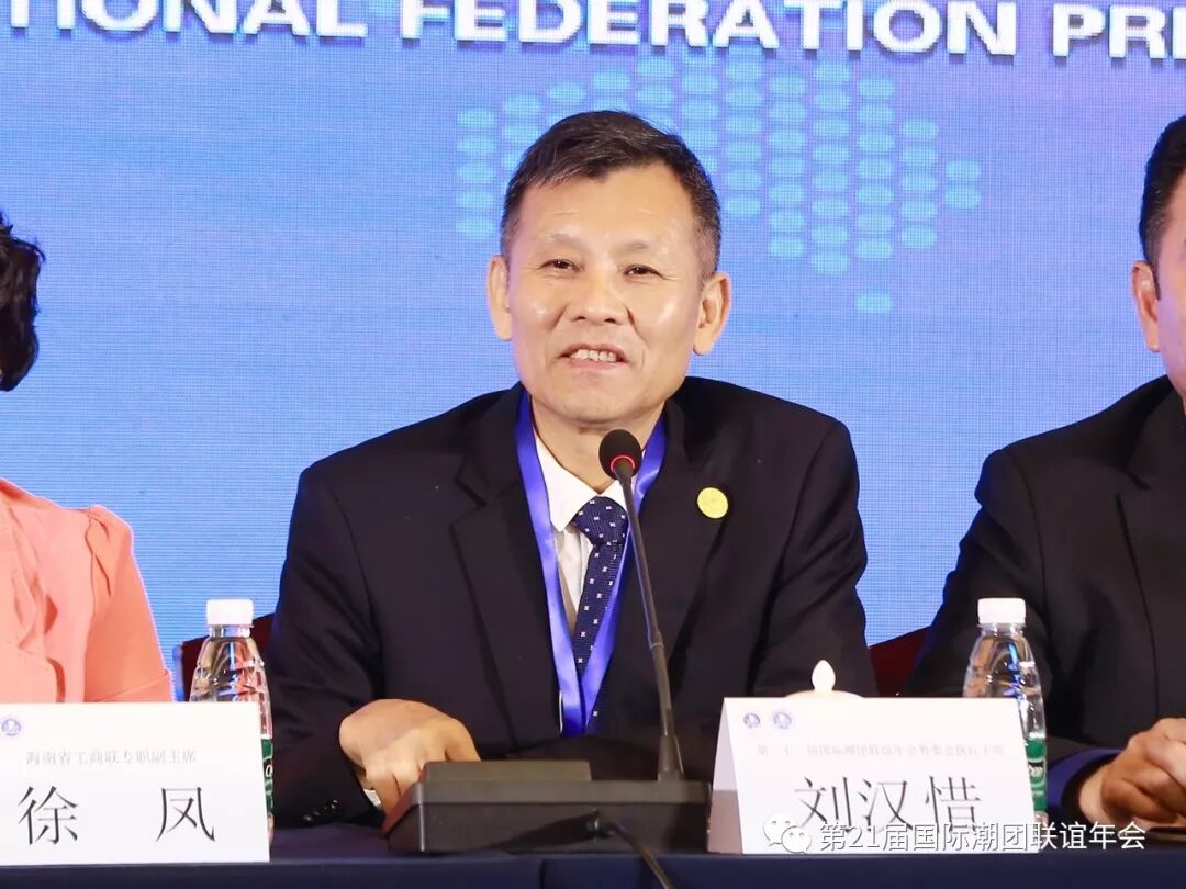 筹委会执行主席刘汉惜:各位领导嘉宾,上午好。当前,海南正面临新的改革开放的大好时机,建设中国海南自由贸易试验区是以习近平总书记发展大局谋划部署的国家战略。海南岛集生态环境、经济特区、国际旅游岛、中国特色自贸区(港)四大优势,众所周知,海南岛是享誉海内外的绿色之岛、健康之岛、和谐之岛。第二十一届国际潮团联谊年会是国际性商贸盛会,届时将汇集全球潮团潮人的力量,向全球潮人宣传海南、推介海南、使他们了解海南、投资海南,参与到全省经济社会发展建设中来,对当前推动海南省自贸区(港)的建设具有积极意义。