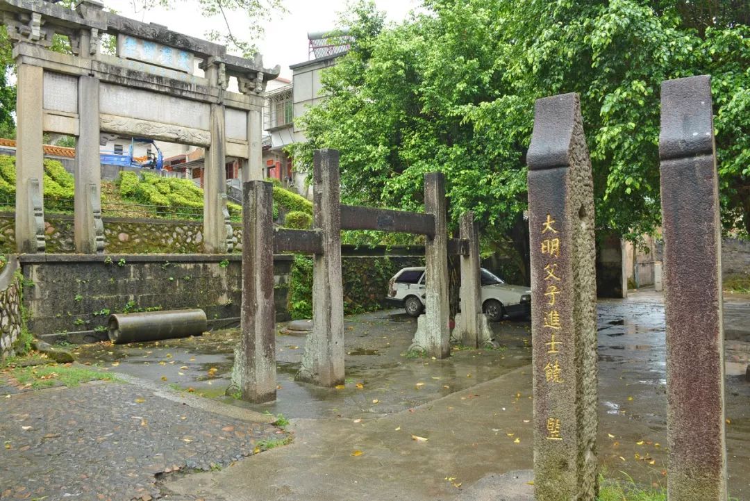 其实明嘉靖与万历年间,茶阳人饶相和他的长子饶与龄先后进士及第,到了清朝,嘉庆和道光年间,茶阳人饶芝和饶褒甲,则又是另一对父子进士。只是先人已立“父子进士”牌坊,后人不便再立同样的牌坊,于是在前面加立了一对旗杆夹石。