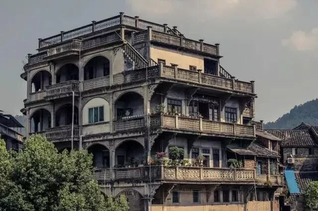 高高矮矮的瓦房民居中,有一座名叫“ 旋庐 ”的建筑尤为特别,高四层半、气派非凡。门口有联“ 旋归田里,庐结河滨 ” 。