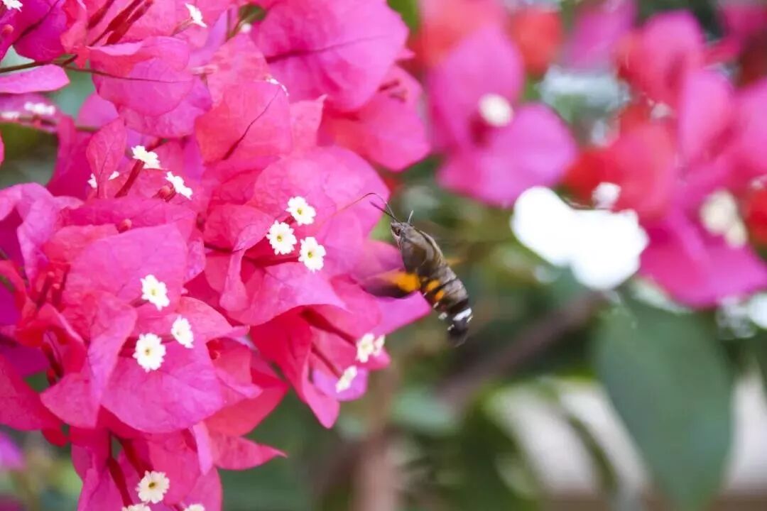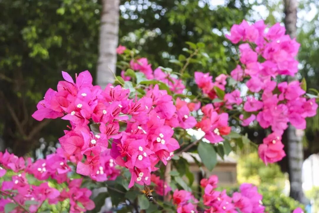 三角梅开放起来红得惹眼,但这红彤彤的“花”呀其实并非它的花,而是花苞片。三角梅真正的花是这小白花,顶生于枝端,每个苞片上都生有一朵小花。苞片上还保留了叶脉的纹路。