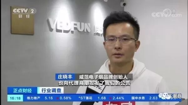 日前,央视财经频道记者就电子烟禁售令采访了威范,庄晓丰作为行业佼佼者,接受了央视的采访,并展示了威范在行业首批投放的智能识别未成年人身份的终端售卖机。
