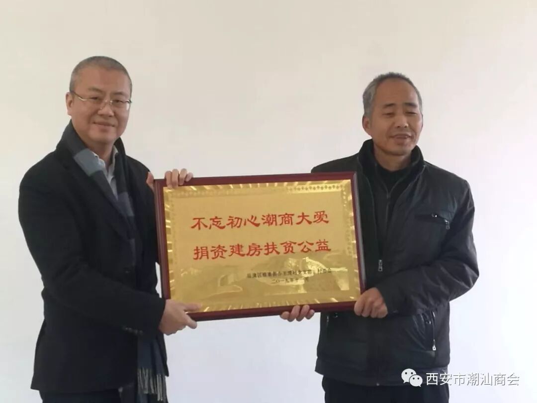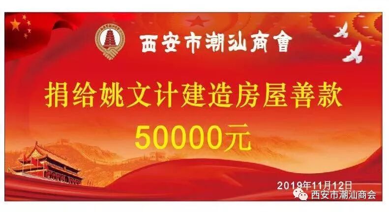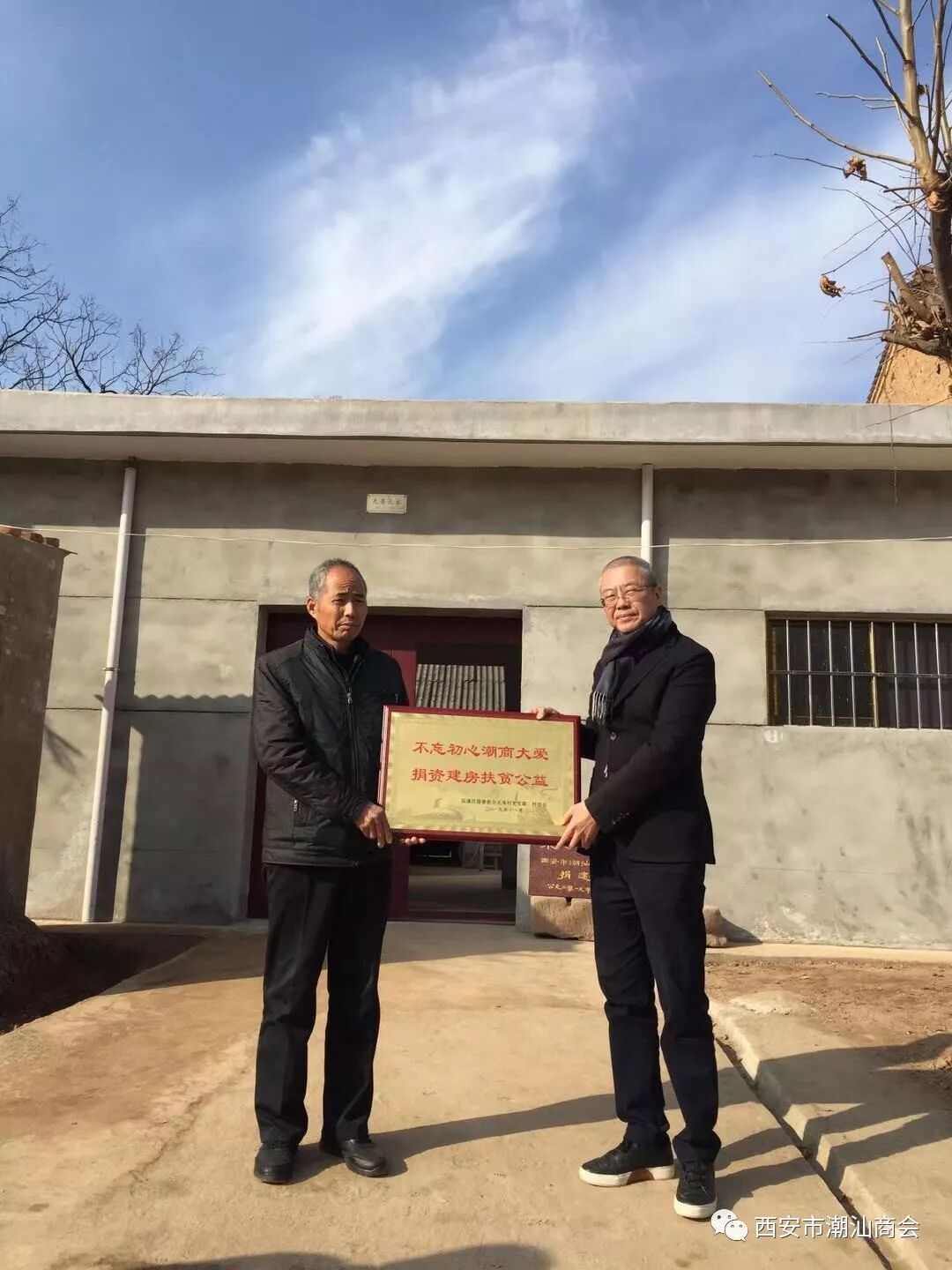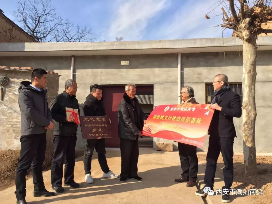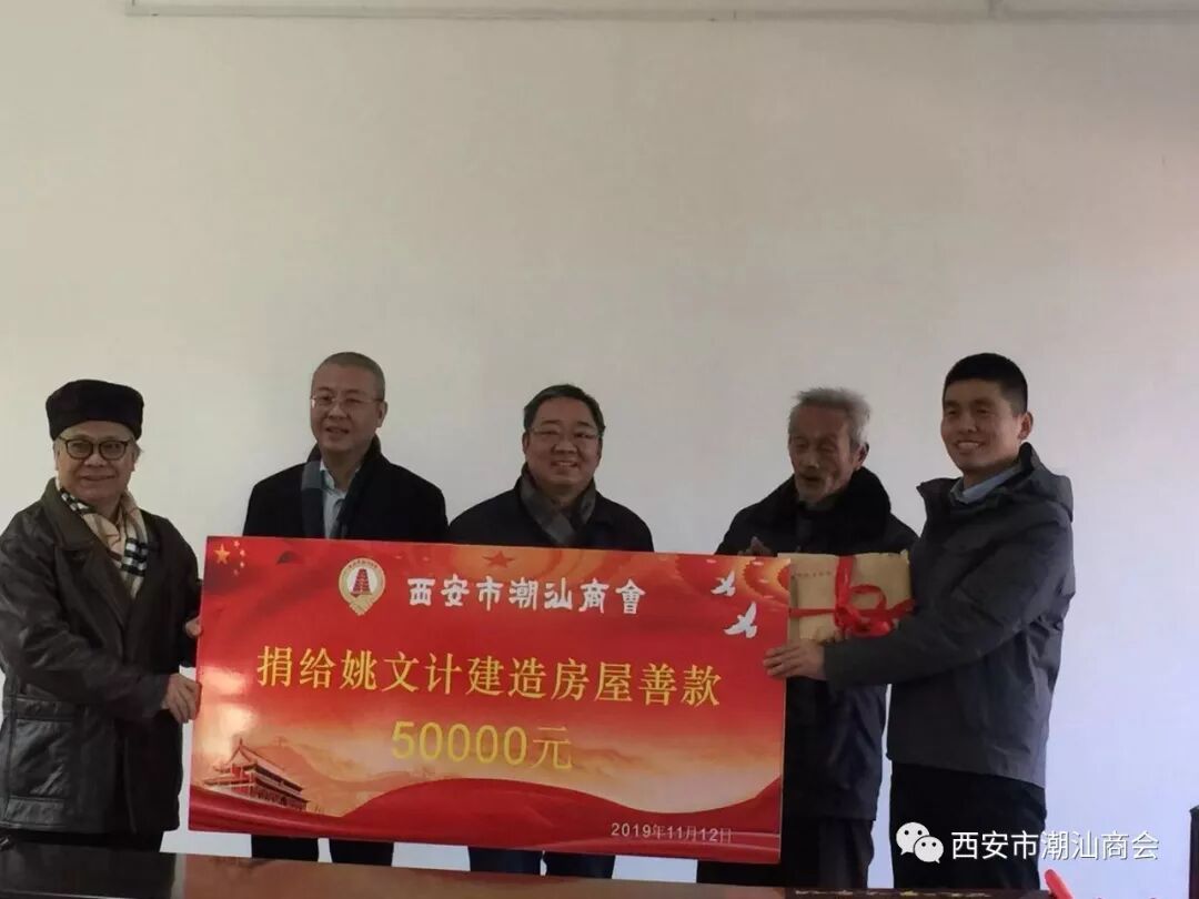 姚文计当过兵,1970年曾经到汕头市领新兵,对潮汕人民有特殊的感情和好评,复员后当过教师、在乡镇政府部门工作过,现属特困房,在民政局领导和在村干部以及村支部、村委的帮扶下,建造三间平房,以解决原来住危房的困难,西安市潮汕商会通过10月22日的扶贫调研后,决定伸出慈善之手、献上大爱之心,捐赠五万元作为建造房屋的善款,彰显潮商响应党和政府号召、精准扶贫、乐善好施、回馈社会的传统美德。