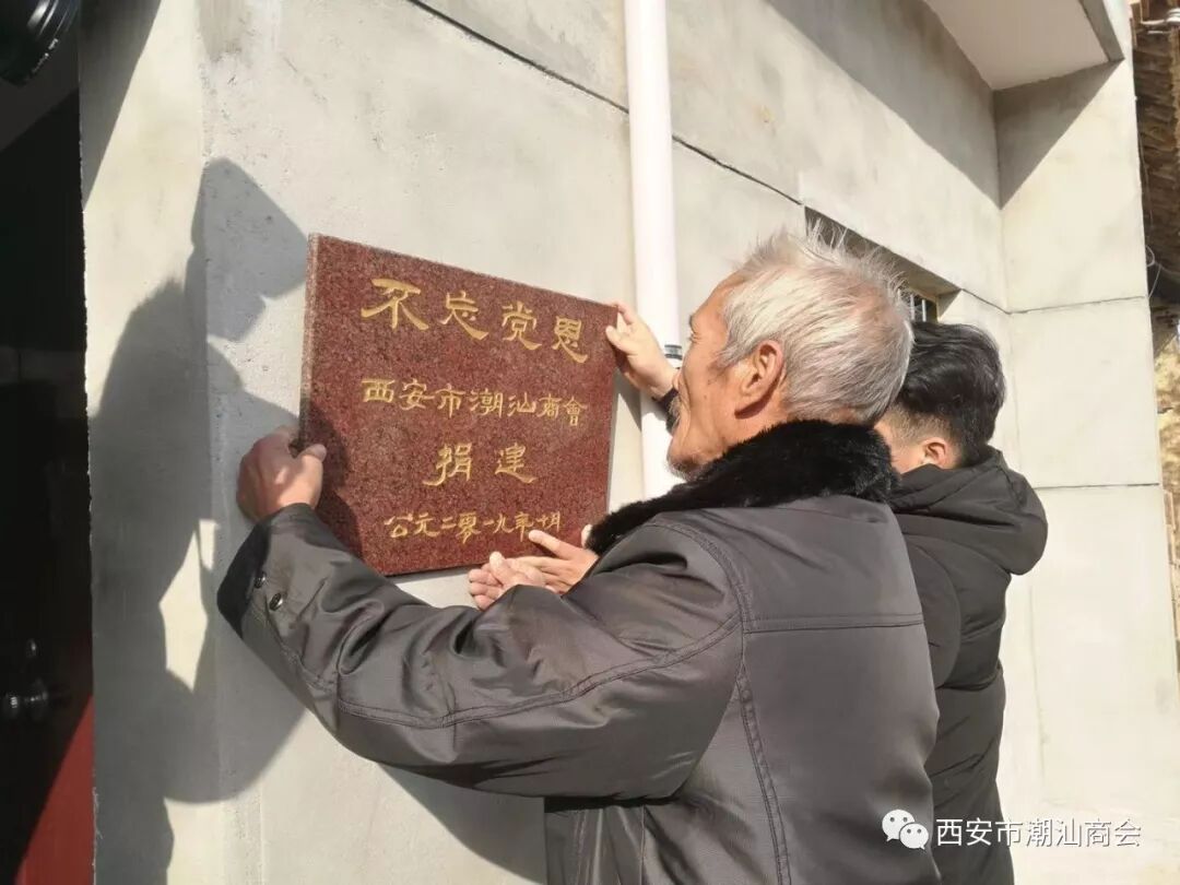 捐款仪式上,民政局副局长朱友民同志代表民政局讲话,对西安市潮汕商会一如既往地支持民政局工作、热心公益、服务社会等工作表示感谢,对商会成立以来的工作给予表扬;贫困户姚文计老先生的致谢词饱含对党、对政府的感恩之情,对西安市潮汕商会献爱心的善举更是万分感谢,他说:只有在中国共产党领导下的人民大众,才能是真正的幸福。在“毛主席万岁!中国共产党万岁!祖国万岁!”那高亢且带激情的口号中,向在座敬了个“军礼”,场面感人,温情浓浓。 王湾村党支部书记、村长姚文革讲话中,对商会领导表示感谢,对潮汕人民表示感谢,并代表村党支部、村委会和全体村民给西安市潮汕商会赠送《不忘初心潮商大爱、捐资建房扶贫公益》的牌匾,郑卓生执行会长在讲话中代表西安市潮汕商会全体会员及在西安的八万多潮汕乡亲,感谢民政局领导对商会的支持和厚爱,他说,我们只是尽一份微薄之力,献一颗爱心,对姚文计先生表示慰问,并祝他早日脱贫,生活幸福!家庭幸福!