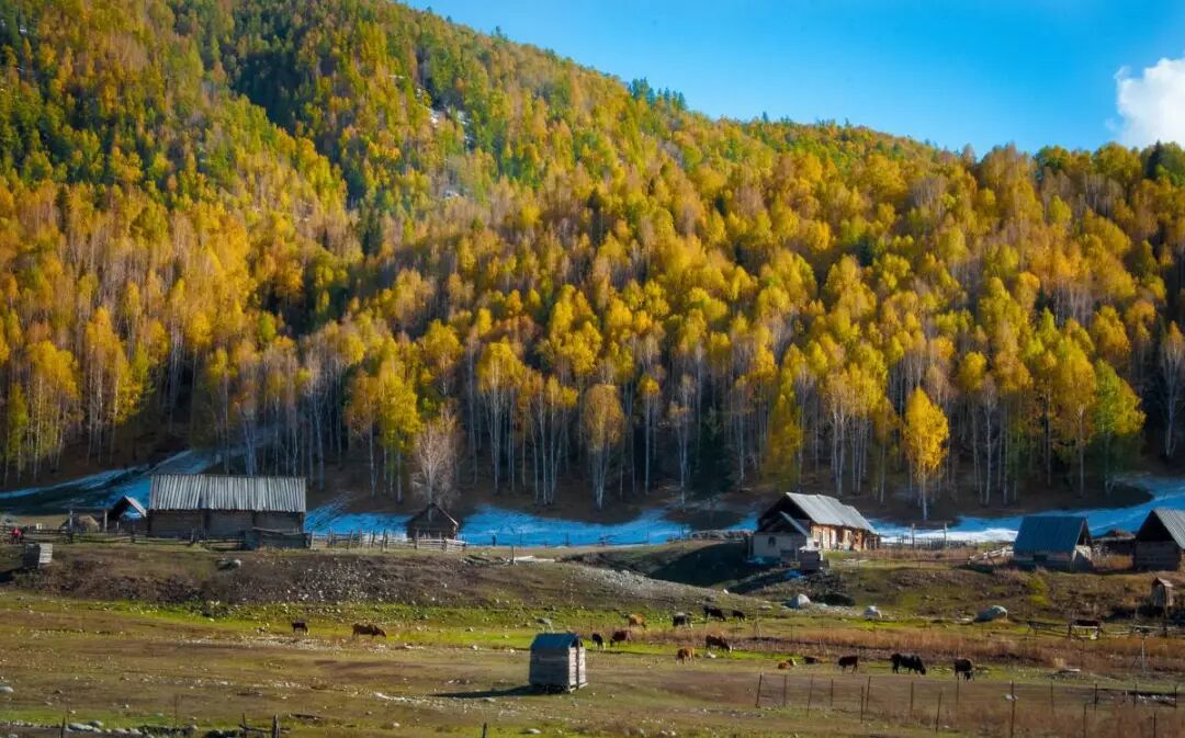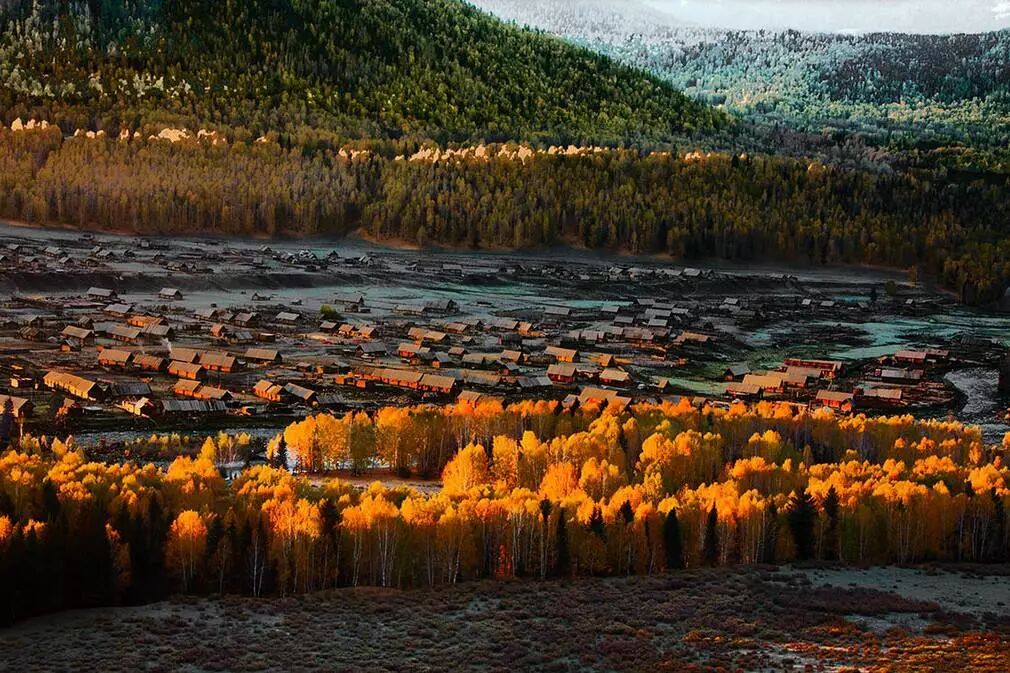 位于中国与哈萨克斯坦接壤的界河畔,是新疆阿勒泰地区图瓦人最集中的一个村子,被称为“中国西部第一村”。一年四季都美如油画,特别是在秋天。金黄的杨树叶,淡黄的落叶松,肆意流窜的金色把山村包围,宛若童话世界。
