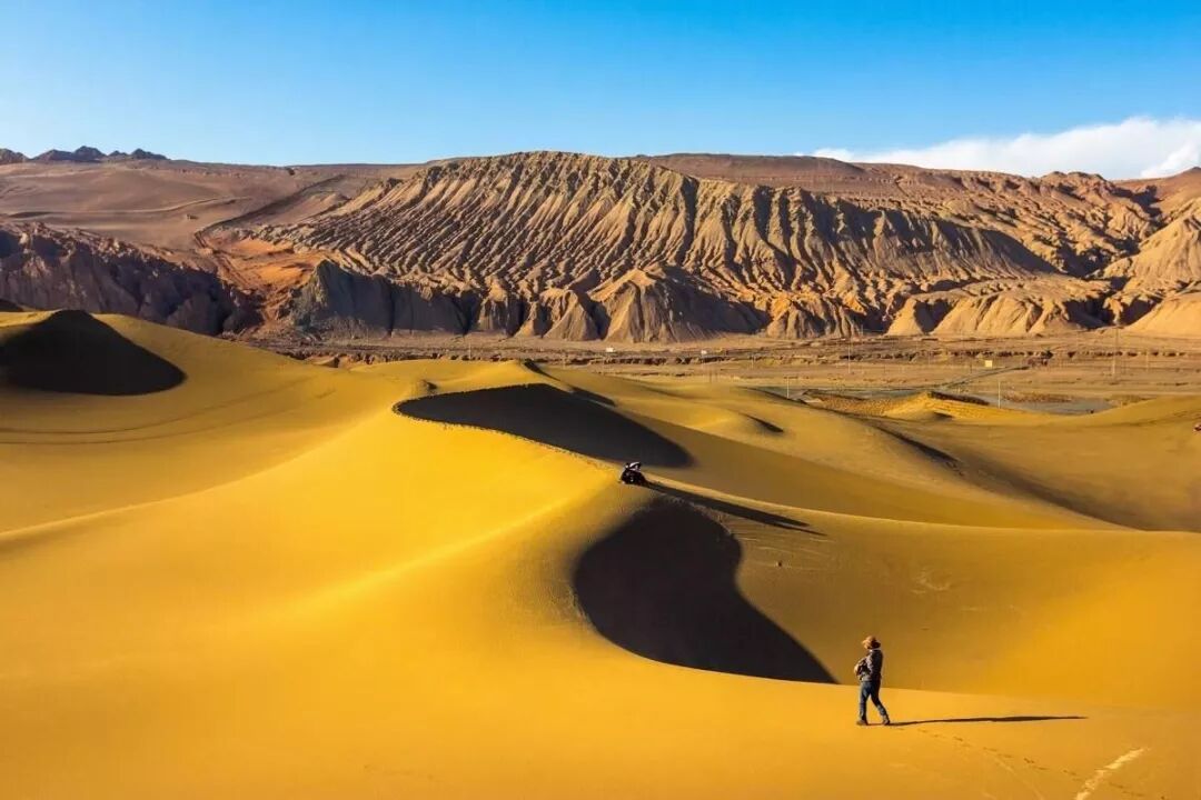 位于新疆吐鲁番盘地的东缘,距离吐鲁番市区90公里,是世界上距离城市最近的沙漠。站在大漠深处沙山之巅,静观大漠日出的绚丽,目睹夕阳染沙的缤纷,一幅“大漠孤烟直,长河落日圆”的壮景。