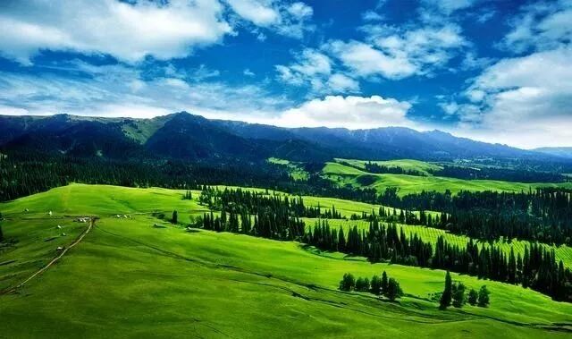 位于伊犁州新源县境内的那拉提草原,是世界四大草原之一的亚高山草甸植物区,自古以来就是著名的牧场。河道交错,森林茂密,莽原展缓起伏,松塔沿沟擎柱,还有毡房点点,畜群云移。