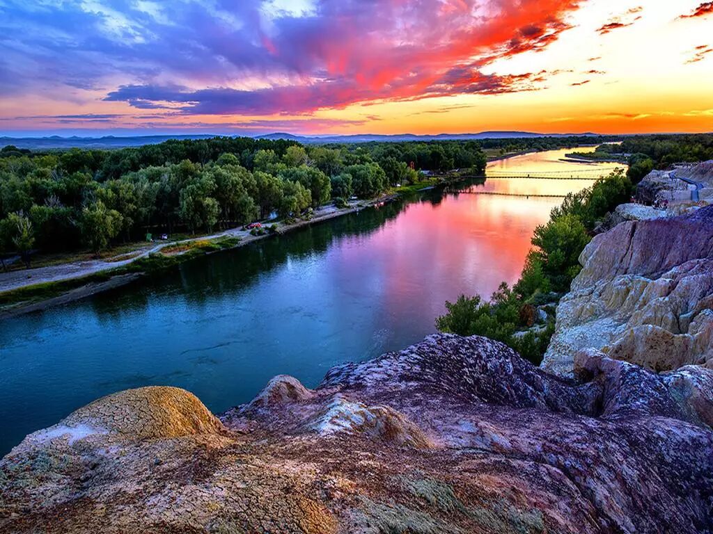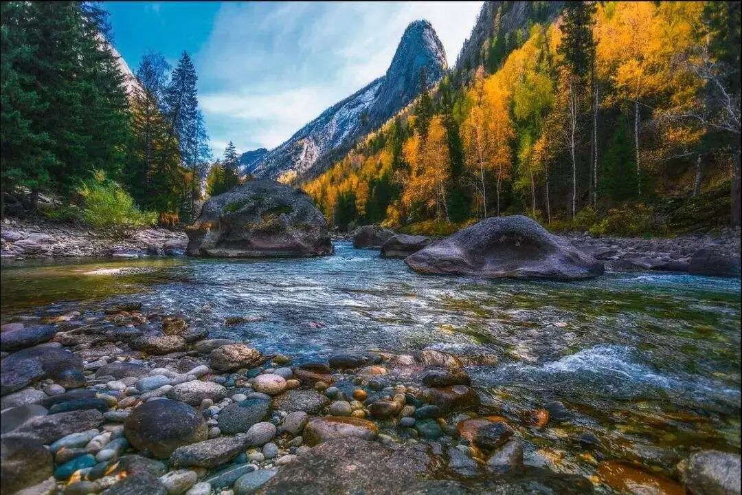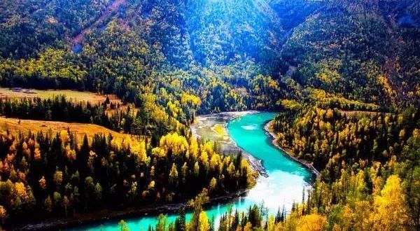 可可托海风景区暨可可托海国家地质公园,集优美峡谷河源风光、沼泽湿地景观、寒极湖泊、地质矿产资源等自然景色为一体。清澈的河流沿峡谷哗哗而过,四周陡峭山峰环抱。山林河水相映,树叶如花,苍茫如海。