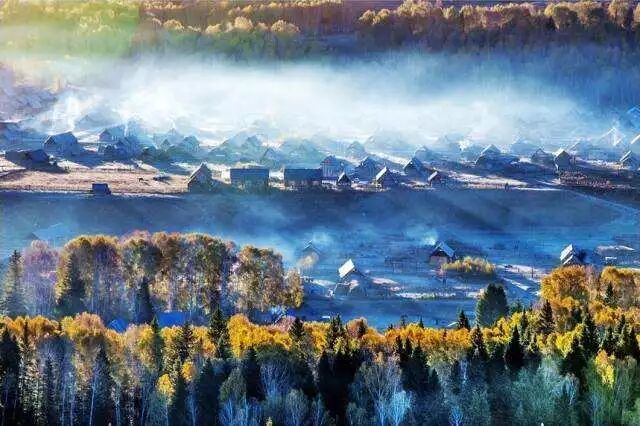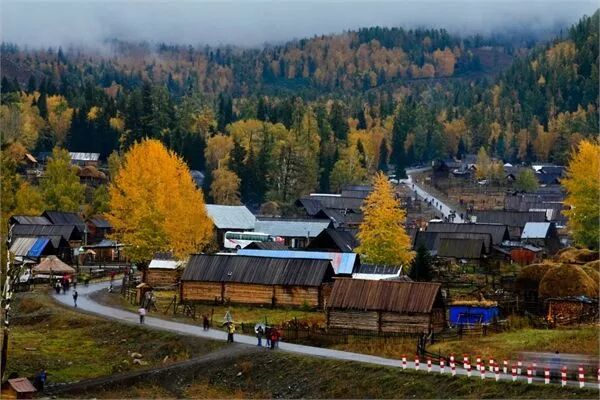 位于北疆阿勒泰地区布尔津县,喀纳斯湖东侧约30公里处,是一个由哈萨克人和图瓦人共同聚居的小村庄,充满原始味道。万山红遍的醉人秋色,炊烟在秋色中冉冉升起,形成一条梦幻般的烟雾带,胜似仙境。