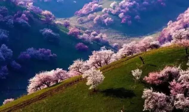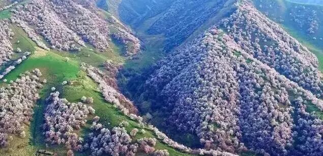 位于伊犁河谷阿吾拉勒山南麓的杏花沟,气候湿润,水汽充沛。三万多亩原始野生杏树林,花开时节,如同童话世界。