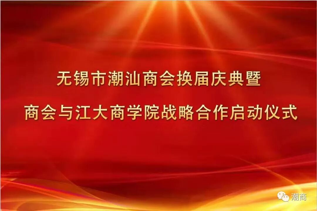 提示:点击上方"潮商"关注我们 ![]() ![]() ![]() 大会首先奏唱《中华人民共和国国歌》。随后,举行以周武振为会长的新一届商会领导班子的授牌仪式。 ![]() 无锡市委统战部副部长、市工商联党组书记许岗向周武振会长授牌 大会现场还举行了无锡市潮汕商会与江南大学商学院战略合作启动仪式。 ![]() ![]() 无锡市潮汕商会周武振会长、江南大学商学院滕乐法院长代表签约双方互换签约文本 随后,广东省总商会副会长、汕头市工商联黄茂强,无锡市委统战部副部长、市工商联党组书记许岗先后上台致辞,换届庆典圆满结束。祝愿无锡市潮汕商会在新一届商会领导班子的带领下,继往开来、砥砺前行,在新的起点上再谱新的篇章! 声明:本文不代表我们的观点,仅供读者参考。文章版权归原作者所有,如有侵权,请联系我们进行删除。 潮 商 文化的境界 · 财富的智慧