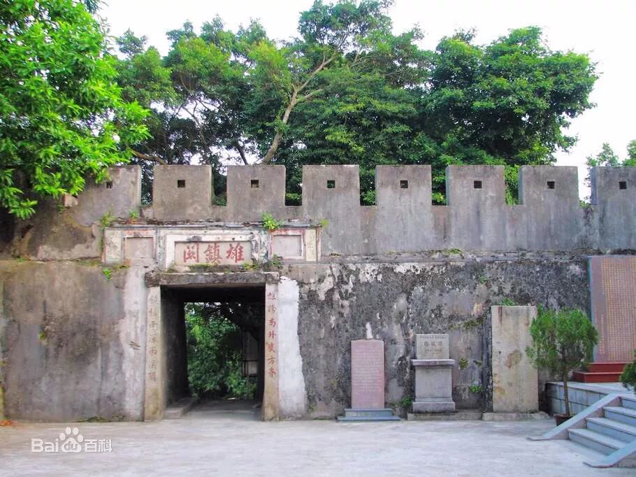 ![]() 古城墙 ![]() ![]() ![]() ![]() 雄镇关 建于明万历十三年(1585年),在深澳金山与马鞍山之间,即云澳镇与深澳镇交界的山脊上,是古代云深两镇的古隘要冲。雄镇关的门上,刻着一副对联:“雄跨南北双方脊,镇摄云深两澳关”,说明了雄镇关之险要。 据清《南澳志》载:“戚继光破吴平道出于此”说的正是此处:明嘉靖四十四年, 戚继光从云澳镇出发,军队开过雄镇关,一举剿灭吴平海寇。 ![]()