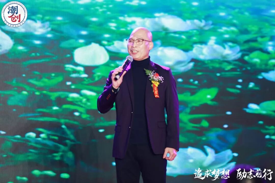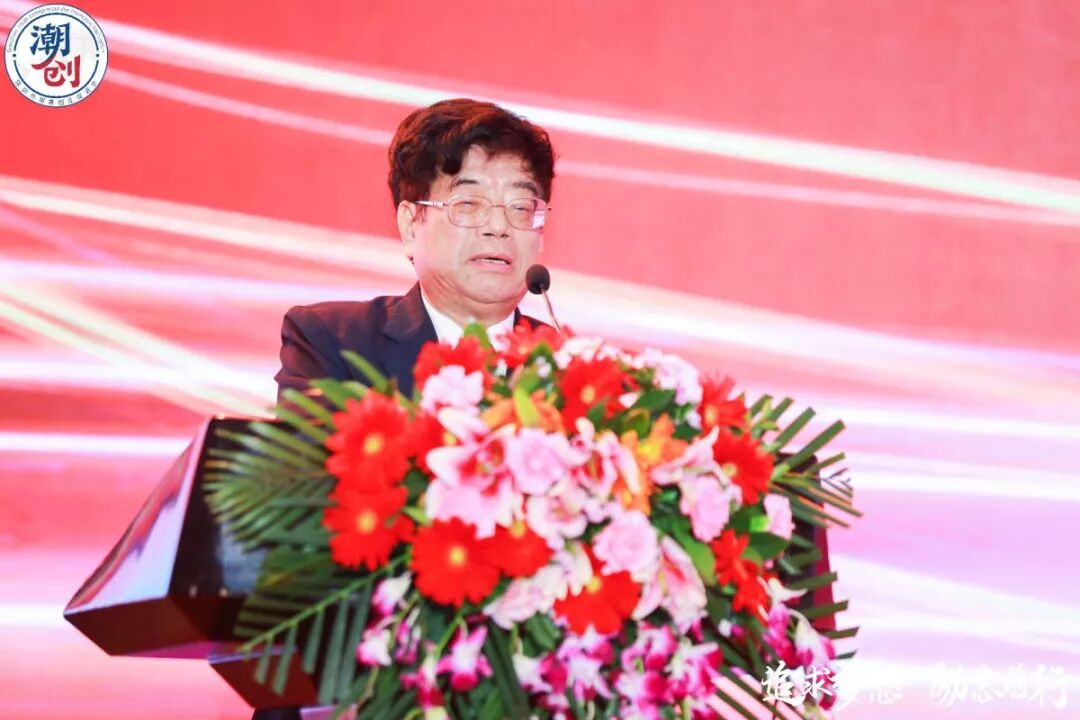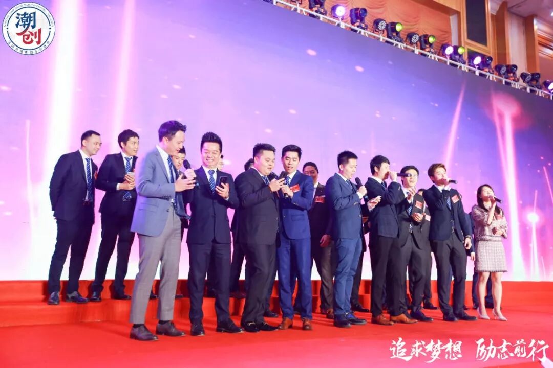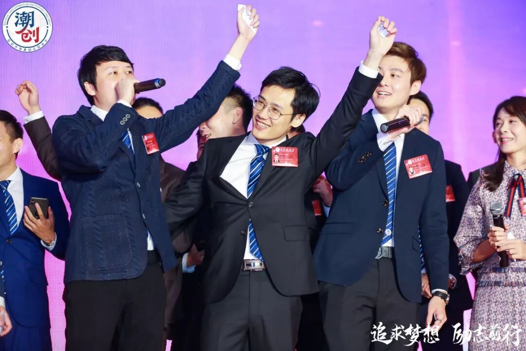 高喊口号:创业创新,看我潮创。同心同德、共创辉煌。