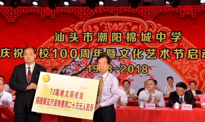 潮阳棉城中学72届校友姚文琛(右) 进入商界,和姚振华等潮汕商界人物相比,算是“大器晚成”之一。扔下“铁饭碗”、下海创业,姚文琛已过而立之年;办起自己的第一家扑克牌厂,已到了“不惑之年”;等公司上市,他已到了“花甲之年”,正好60岁。