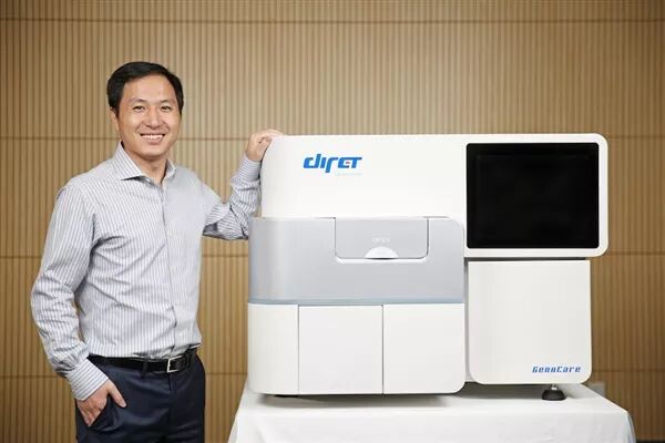 瀚海基因董事长贺建奎在自研的第三代测序仪旁。图片来自网络