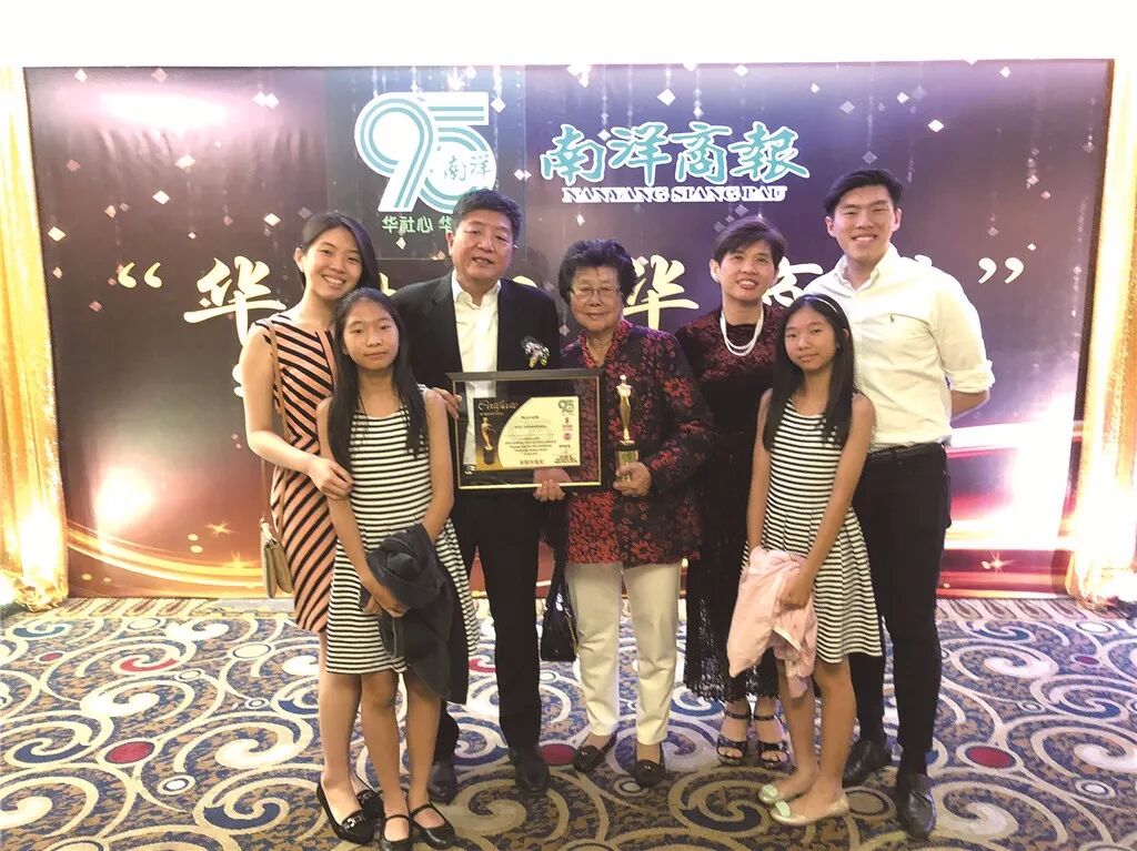 获南洋商报卓越华商奖与家人合影 白手起家 感恩潮人