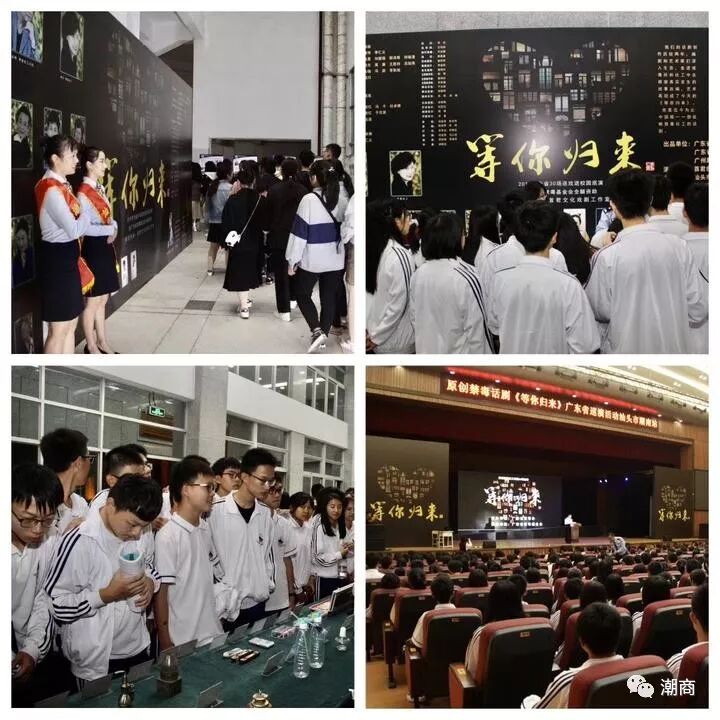 大型原创禁毒教育话剧【等你归来】 近期,大型原创禁毒教育话剧【等你归来】针对毒品日益泛滥的严峻形势,为开展以预防为主的禁毒教育工作。由广东省禁毒委员会筹划,广东省禁毒办、中山市禁毒办、广州踏歌起舞文化传媒有限公司联合出品,首部反映社会工作者帮扶社区志愿戒毒康复人员的大型禁毒话剧《等你归来》由著名表演艺术家国家一级演员李仁义、禤智红领衔主演。该剧从2017年国际禁毒日在中山市首演开始。至今已在广东全省巡回演出八十二场。场场爆满,剧情跌宕起伏,催人泪下,观众反响热烈,好评如潮。全省的巡回演出,本着以校园为阵地。以学生为主体、以心理教育为抓手,有力地提升了青少年学生。识毒、防毒、拒毒意识。从源头上。预防了青少年涉毒行为的发生。在广大青少年心中筑起了一道坚不可摧的新的长城。当等你归来的主题歌声响起时,全场掌声雷动,观众眼含热泪,争相和演员合影。