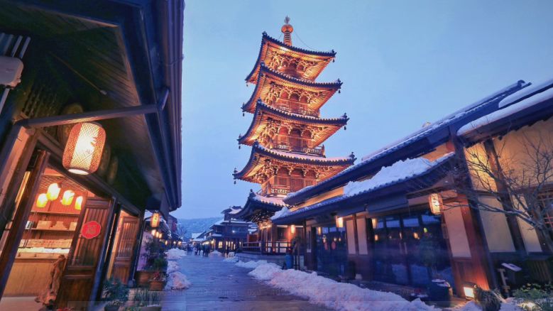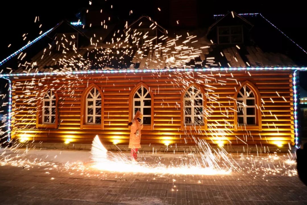灯笼下、积雪旁 自行车吱呀吱呀地 驶向回家的方向 孩子们依偎在爷爷奶奶的怀抱 看那团聚的烟花多闪亮