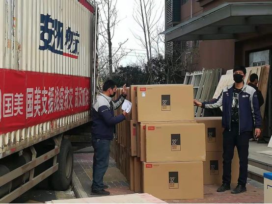 股市利好的另一边,是国美驰援多家方舱医院,获央视实名点赞?1小时内货源组织到位,2小时出库配送到位,24小时设备安装调试完成......在这场与时间的拉锯战中,国美集团积极落实“应收尽收”号召,驰援多家方舱医院,发挥大连锁优势,高效协同,再现“中国速度”!2月12日,火速配送30台空调及70台微波炉到武汉江夏大花山方舱医院之后,2月13日,国美捐赠方舱医院第二批物资250台电视全部到位,其中50台国美智能电视送装至武汉江夏大花山方舱医院,另200台电视送装至武汉市九医院东院A区方舱医院,以保证医护人员及患者良好的生活医治环境,助力方舱医院“应收尽收、应治尽治”。据了解,截至2月12日,大花山户外运动中心A馆“方舱医院”原有400个床位,B馆将新开辟400个床位。目前A馆床铺、垃圾桶、电线插孔等配套设施已备齐,公共区域的电视、饮水机、空气净化器、取暖设备以及各类书籍已安装和摆放完毕,“三区两通道”升级改造工作也已完成,可满足患者的各类生活需求,基本具备收治轻症患者条件,收治确诊的新冠肺炎轻症患。50台电视的送装在一天内完成,这在当下并不容易。为此,国美前期已做好预案,发挥送装同步优势,不脱节不误工,切实保证任务按时完成。目前,国美电视品类的送装同步服务已覆盖全国,洗衣机、冰箱品类送装同步服务也已覆盖到全国460个城市,切实保证了用户的生活需求,更有力支撑了此次疫情期间的各个援建项目。
