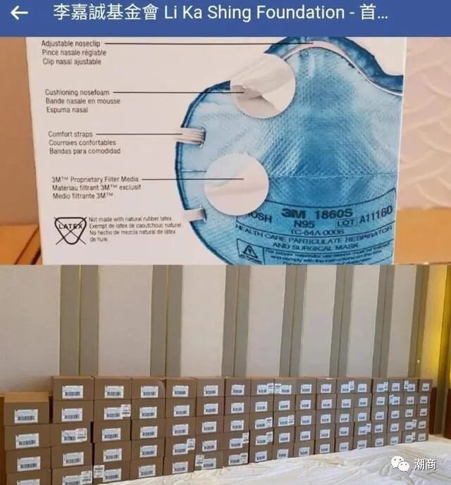 李嘉诚基金会周一(17日)公布,继捐资1亿港元支持武汉医护后,基金会在全球搜购口罩和防护物资,第一批物资已到港,当日起向13个社福机构及6间长者院舍派送共25万口罩。