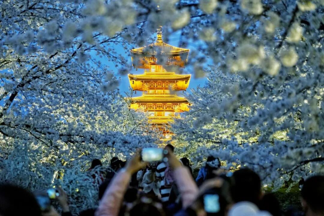 忆往昔,每逢初春樱如雪, 各路游客纷纷来赴花事之约。 也多亏昔日回忆里装满的一簇簇粉红, 给我们战“疫”逆行底气。 一位央视新闻网友写道, 我怀念的是, 当樱花以秒速5厘米的飞坠, 轻吻武大的斗拱翘檐, 八方人海也以一日千里的潮涨, 向武汉聚拢。 以后不会抱怨堵车了,因为那才是繁华大道; 也不吐槽人山人海了,因为这才叫国泰民安。