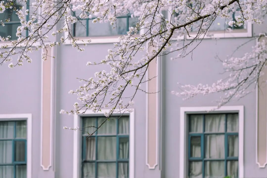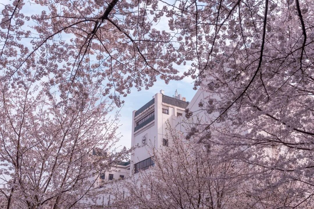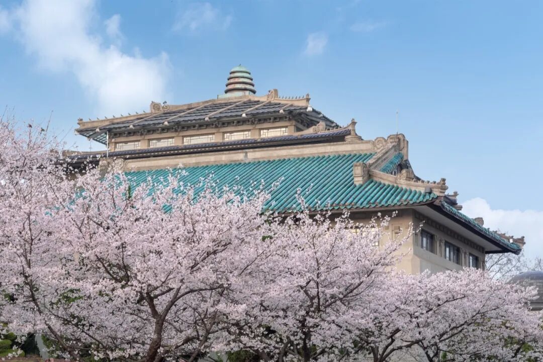 图/开满樱花的武汉大学 位于东湖湖畔 摄影师@Eterlaine张炜