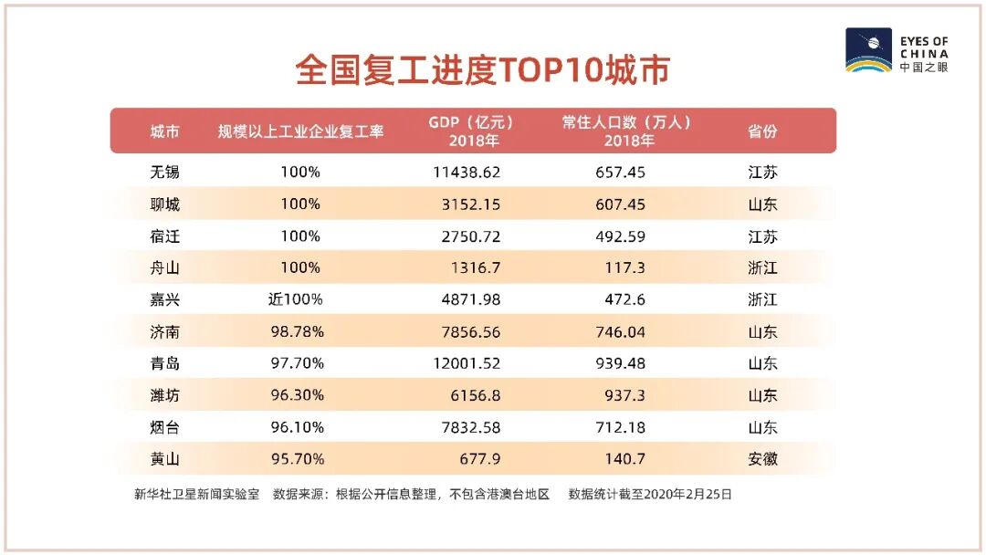 中国“热度”提升的背后,是分区分级精准复工复产的关键性举措。虽然面临招工难等诸多挑战,根据各省公布数据,自2月10日起两周左右,中、东部地区的工业生产已基本恢复,那些年GDP高达万亿的城市也在向100%复工努力。