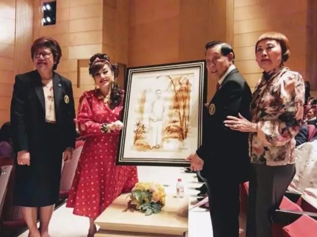 泰国华侨报德善堂董事长郑伟昌博士(右2)将郑午楼年轻时的肖像献给华侨崇圣大学 2019年11月24日,是泰国华侨报德善堂故董事长、大企业家、大慈善家郑午楼博士逝世12周年纪念日。