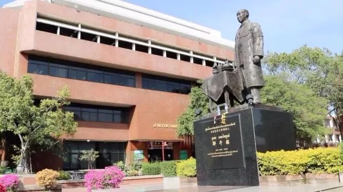 泰国华侨崇圣大学校园的郑午楼塑像 华侨崇圣大学,是泰国比较有名私立学校,位于曼谷东郊,自2008年起,该校先后同厦门大学、广西民族大学、中央民族大学等有交换生合作关系。